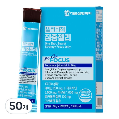 대웅생명과학 일타비책 집중젤리 테아닌 L-아르지닌 타우린 공먹젤, 50개, 20g