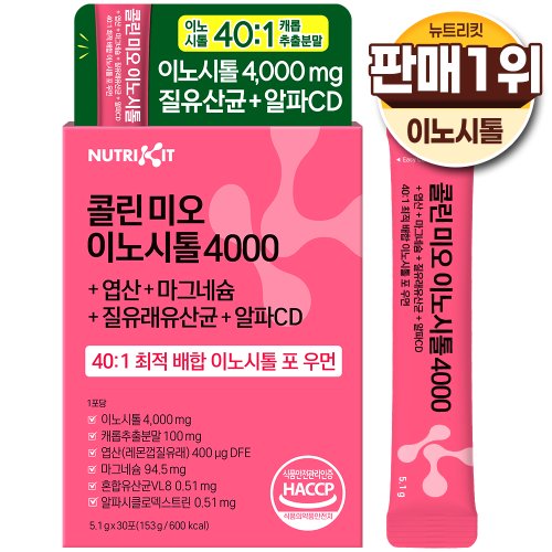 뉴트리킷 콜린 이노시톨 4000 활성형 엽산 미오 40:1 고함량 배합 D-카이로 이노시톨 포 우먼 ( 다낭성 난소 증후군 임신 준비 여성 케어 ), 1개, 153g