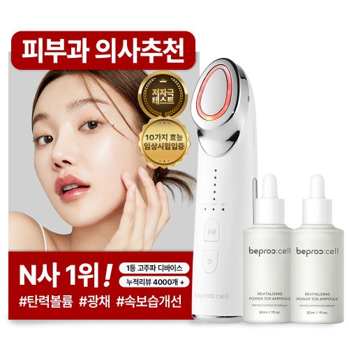 [피부과 의사추천][임상시험 완료] 5가지 기능 비프록셀 고주파마사지기 갈바닉 EMS 피부관리기 + 앰플 2개